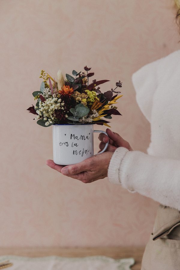 Importante: las flores son preservadas y secas, no se pueden mojar porque se estropearían con el agua. Es importante también que no les de la luz del sol de forma directa porque están teñidas. Las flores duran años, no se caen, pero con el tiempo irán perdiendo el color.