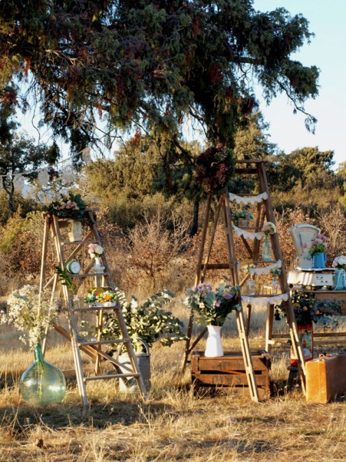 Imagínate que el día de tu boda quieres una escalera antigua, una maleta vintage o una mesa tocinera pero no la encuentras o no quieres comprarla porque luego no sabes qué hacer con ella. Tengo la solución! Te alquilo todo el mobiliario decorativo que he ido comprando a base de patearme mercadillos. Para que des un toque vintage a tu boda. Escríbeme a info@floresenelcolumpio.com y te envío el catálogo.