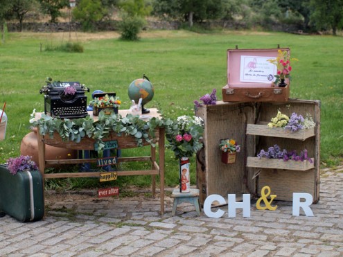 En la zona del cocktail, además de las escaleras decoramos otros rincones más como un columpio con el nombre de los novios o la mesa de firmas. Mil gracias a Alberto, amigo de los novios, que se encargó de poner todos los detalles de los protagonistas, y por supuesto, a mi amore por estar ahí siempre que l0 necesito.