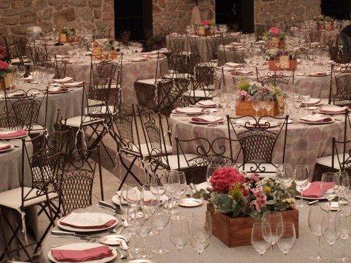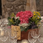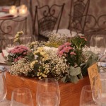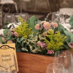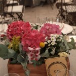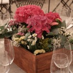 La novia y Bea, wedding planer de Nara Conection, querían como centros de mesa cajas de madera llenas de flores. Elegimos Hortensias, limonium, eucalipto y flores silvestres . Este fue el resultado.