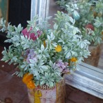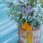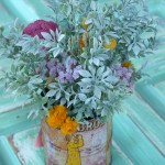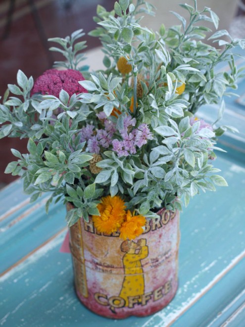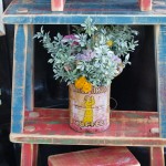 Una lata antigua de Canadá, que ya utilicé con flores naturales, pero que ahora convierto en un centro de flores secas y artificiales para que dure mucho tiempo. Los muebles son de Mandra. Preciosos, me los llevaría todos a mi casa.