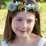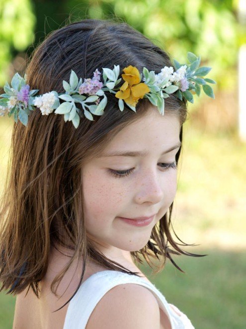 Algunos pétalos de hortensia liofilizada, algo de limonium y flores artificiales componen esta coronita pensada para una niña encargada de llevar las alianzas en la boda de Penélope.