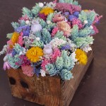 Qué mejor regalo para una madre que flores y si encima el centro es de los que duran, mucho mejor! Las flores son secas y artificiales y el recipiente es de madera antiguo. El regalo se lo hizo Lucía a su madre por su cumpleaños.