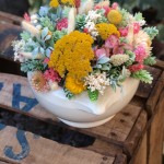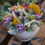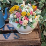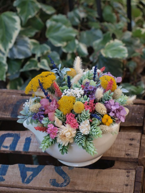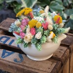 Este centro es de los que duran muchos años porque las flores son artificiales y secas. Se lo regalo Raquel a su madre por su cumpleaños.