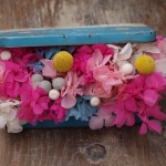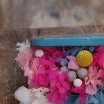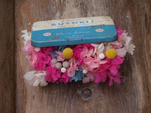 Hortensias liofilizadas en una antigua caja que incluía un kit de productos Johnson´s. Colores vivos para dar la bienvenida a la primavera. Por fin!!! Precio: 40 euros