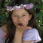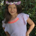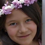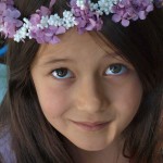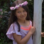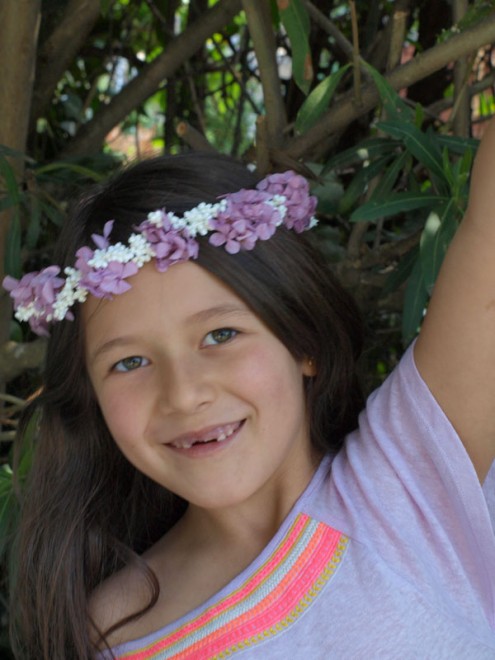 Ainara fue de invitada a una boda con esta corona de flores preservadas. Y así de guapa posó para mí cuando vino al taller con su madre.