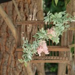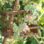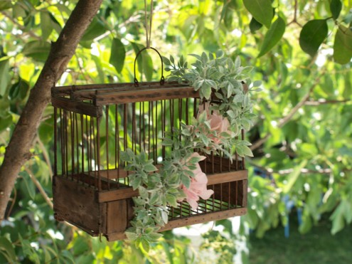 Qué decorativas son las jaulas y qué ideales para decorar con flores. Esta es una antigua caja de jilguero y las flores son artificiales. Precio: 40 euros