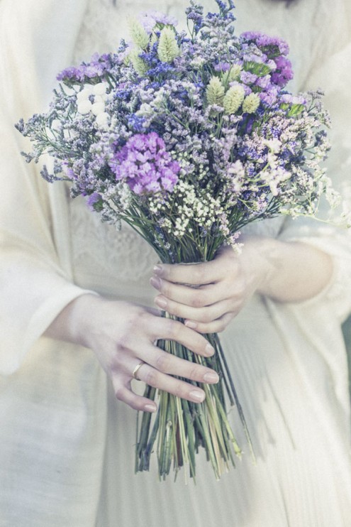 Elena se casó en mayo en un pueblo de Palencia. Quería un ramo silvestre y la corona de flores a juego. Me ha mandado las fotos de su boda y me han encantado, así que las comparto con vosotros. Las fotos se las hizo una amiga, Marigel Arnaud.