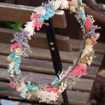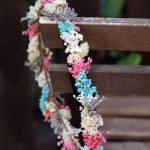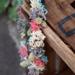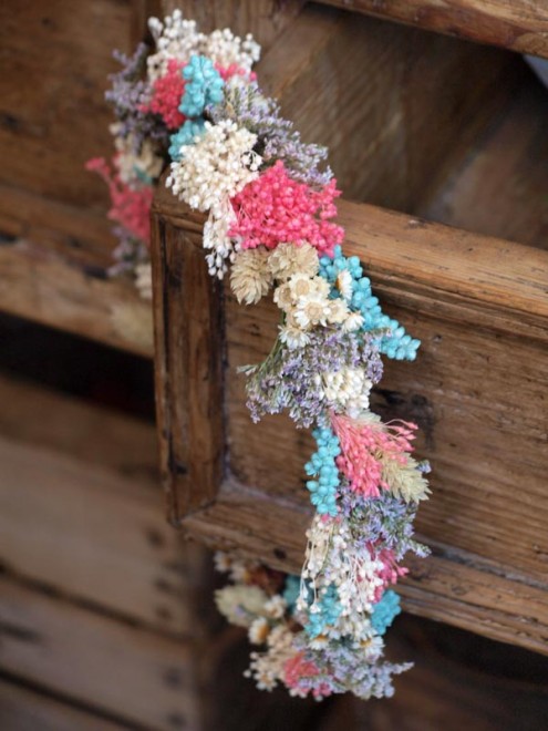 Estíbaliz se casa en Alemania. El ramo no se lo puedo hacer, pero sí su corona de novia y la de su sobrina. ¿Qué os parece el toque verde mint, a juego con sus zapatos? Las flores son secas y preservadas.