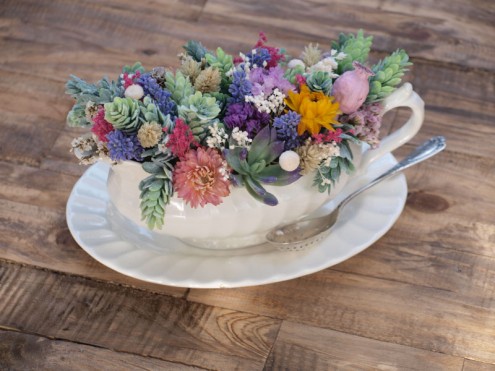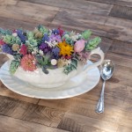 Gabi estuvo en el Nómada Market y entre todos los centros que llevé eligió esta salserita. La compró para ella, para ponerlo en su salón lleno de flores y plantas. El plato esta incluido, la cuchara no, que es herencia familiar de mi madre.