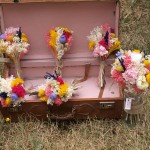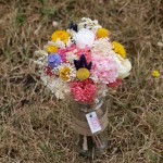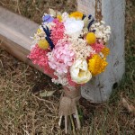 Aviso. Este sí es un ramo de novias de flores secas y liofilizadas, incluso alguna flor artificial. Aunque parezca raro, es el primero que hago de este tipo. Con él se casó Irene. Los otros ramilletes los llevaron sus amigas.
