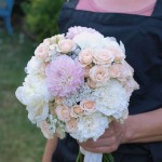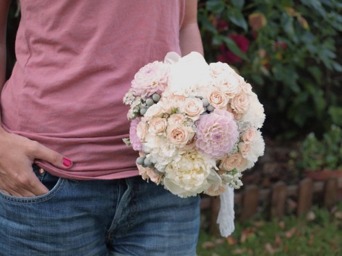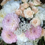 El ramo preferido de Irene era el titulado «De prima a prima» así que quería uno parecido, con los mismos tonos en rosa, nude, gris y blanco. Una combinación muy romántica con el toque delicado de las dalias y las rosas ramificadas.