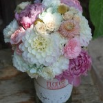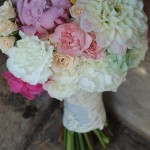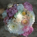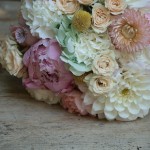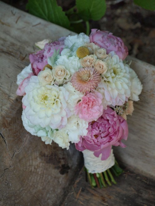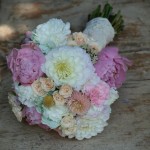 Nuevamente feliz por poder poner peonías en un ramo de novia. Peonías y un par de dalias, dos de las flores preferidas de Melina, la novia. Tonos pastel con un toque ligero de hortensia verde a juego con la corbata del novio.
