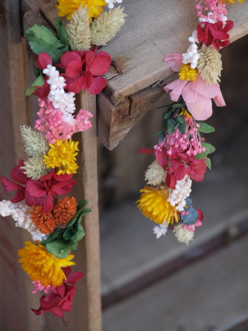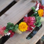 Esta es la media corona que lucirá Montse en su boda, en consonancia con su ramo de novia, que no se lo hago yo porque se casa en Badajoz, en una bodega. Durante la ceremonia llevará la corona más fina y luego en el banquete otra parecida, pero más gordita.