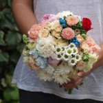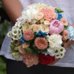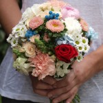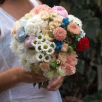 Rocío quiso incluir en su ramo de novia el color azul de la brunia pintada, a juego con sus zapatos y una rosa de color rojo en referencia al ramo de rosas rojas que siempre le regala su pareja en ocasiones especiales. Y este fue el resultado. Un ramo único, el ramo de Rocío.