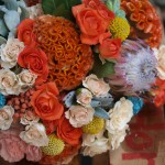 Rosario se casaba en Almería y en la decoración de su boda tenía un gran protagonismo las crasas, por eso están incluidas en su ramo. Además elegí celosía, protea, verde africano… flores un tanto «extrañas» y diferentes, que es lo que buscaba la novia.