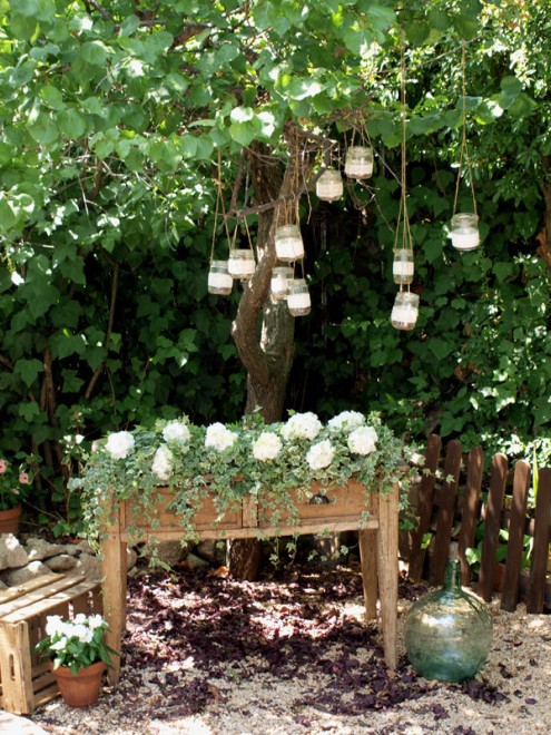 En realidad el destino de este centro de hiedra y hortensias era el altar de la iglesia de Torrelodones. Fue un encargo que me hizo Vicky para su boda. Pero, ¿ por qué no decorar también una mesa con un centro de este tipo? Lo probé y aquí está el resultado. Me encanta. ¿Y a ti?