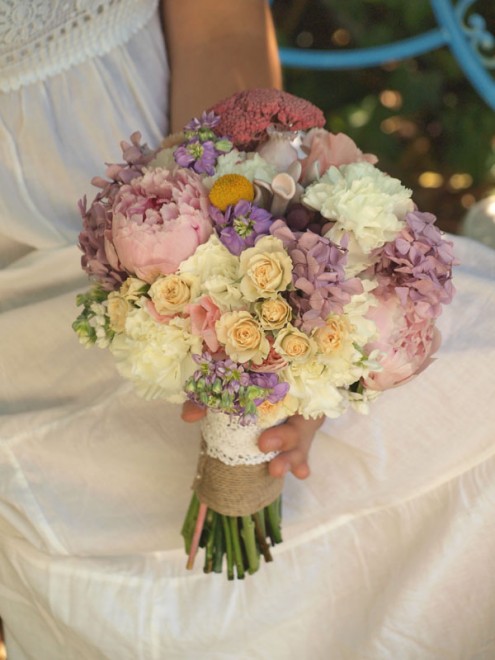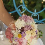 A finales de agosto no es fácil encontrar peonías, pero Vicky tuvo suerte y finalmente pude hacer su ramo de novia con estas flores. Sólo dos, pero es suficiente para un ramo en el que la clave es la variedad de flores y de tonalidades. Un lujo hacer un ramo así, la verdad. Gracias, Vicky.