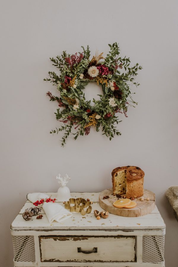 75,00€Esta corona de flores preservadas lucirá bonita en Navidad pero también el resto del año.