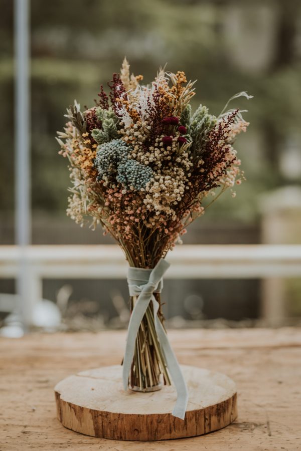 - Incluye una gran variedad de flores silvestres y eucalipto preservado.