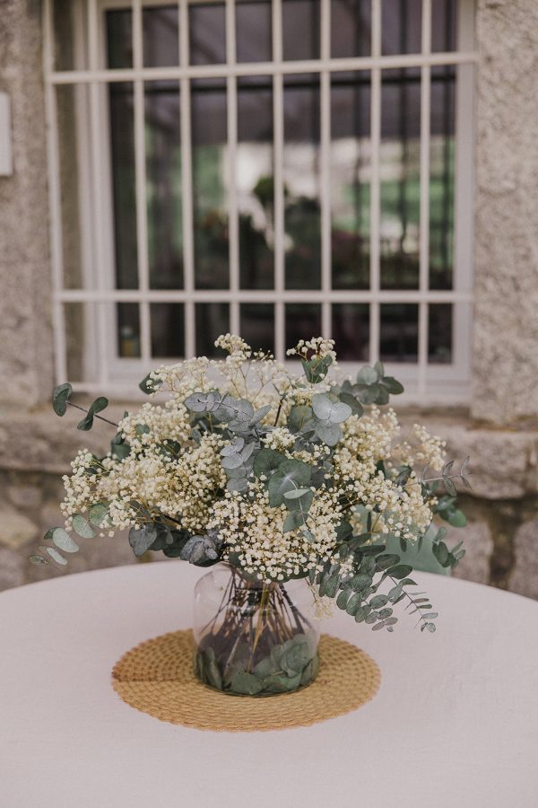 Centro de paniculata y eucalipto que tenemos en la sección de flores naturales.