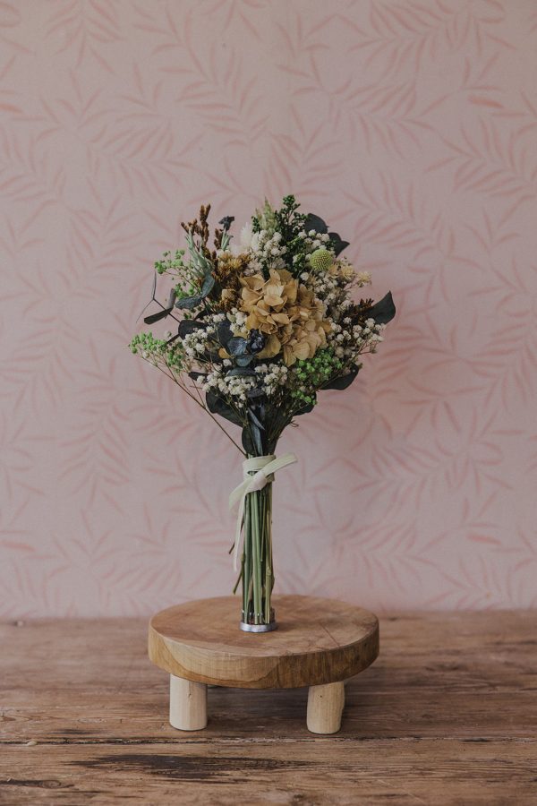 Si lo quieres llevar como ramo de novia puedes hacerlo pero es importante que sepas que no incluye el servicio de asesoramiento (videollamada, visita al taller, fotos del ramo… ) Tampoco incluye una personalización de las flores.