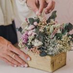 Este centro de flores preservadas lleva una base de eucalipto y está realizado en una caja de madera hecha a mano en nuestro taller, totalmente artesanal. Por este motivo tu caja siempre será única, no habrá otra igual.