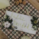 Este cartel de madera tiene dos detalles de flores preservadas.