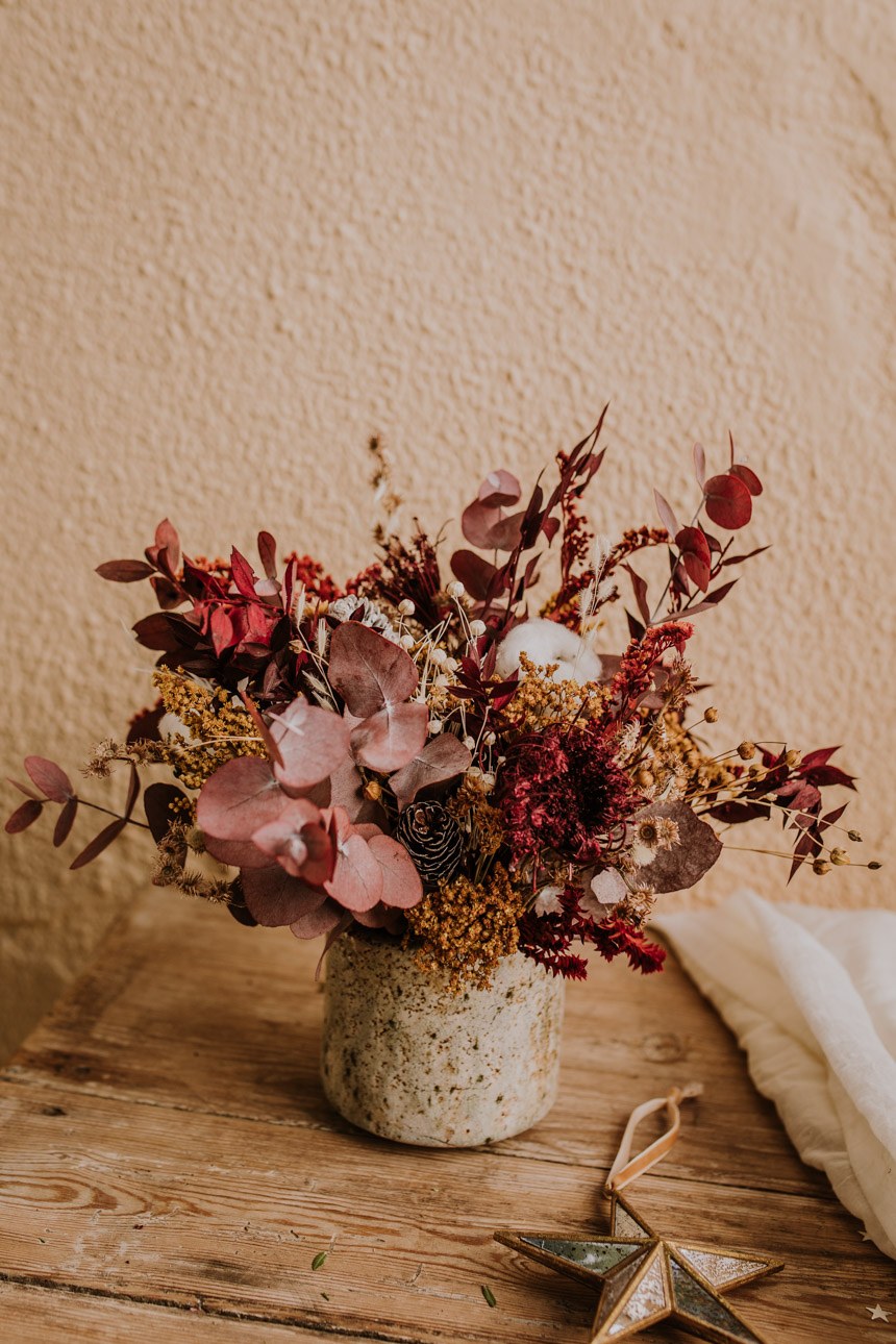 Recipiente de cerámica incluido junto con las flores preservadas.