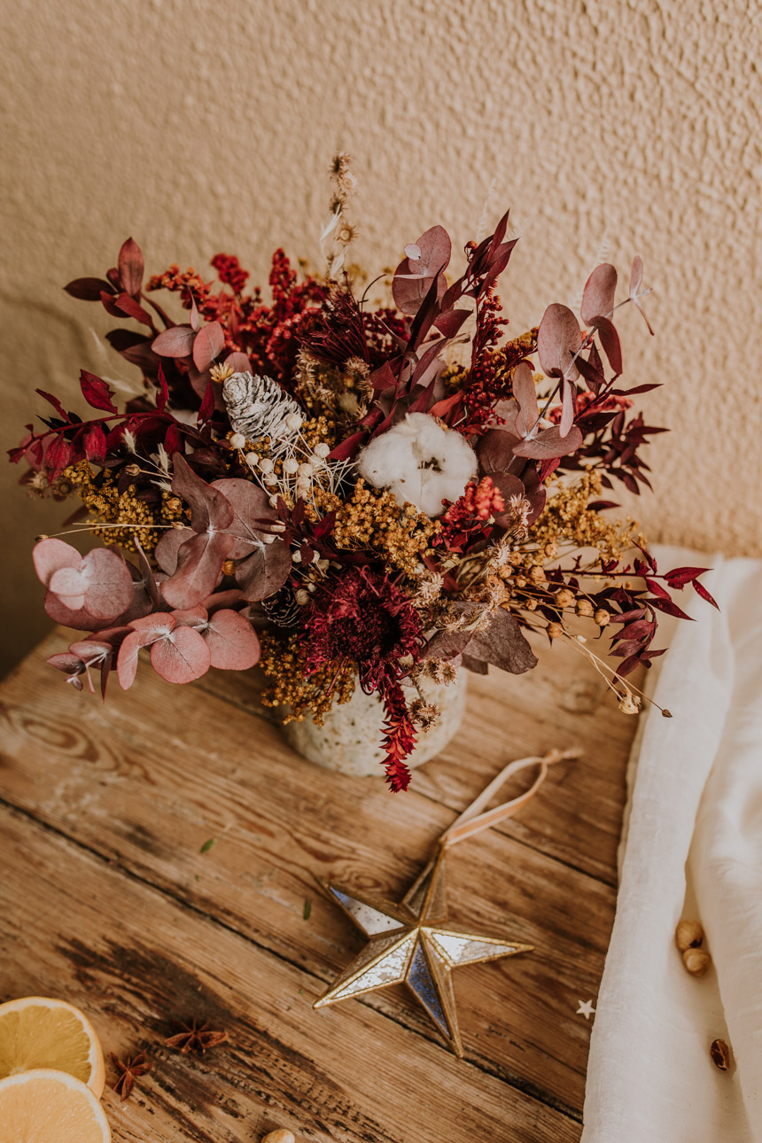 Importante: las flores son preservadas y secas, no se pueden mojar porque se estropearían con el agua. Es importante también que no les de la luz del sol de forma directa porque están teñidas. Las flores duran años, no se caen, pero con el tiempo irán perdiendo el color.