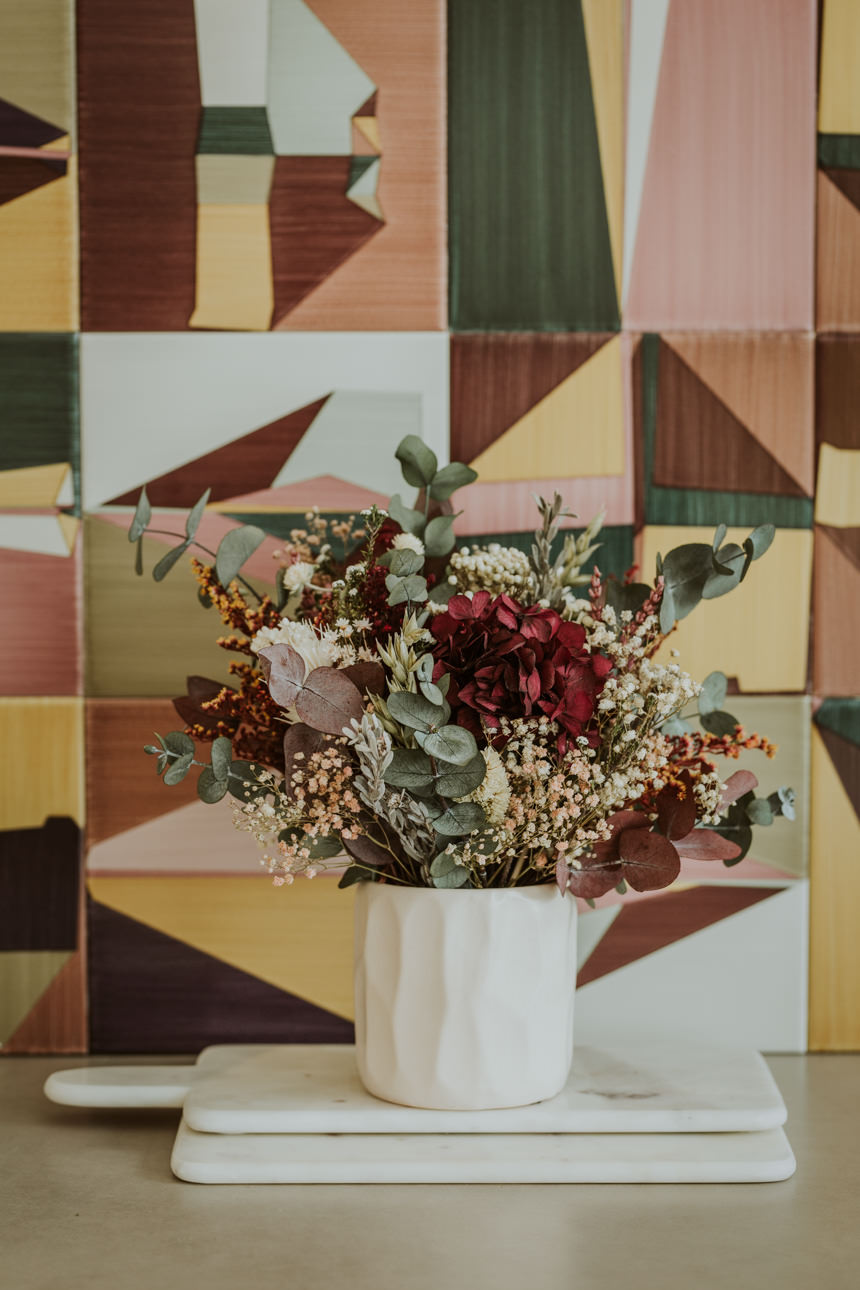 Las flores pueden sufrir modificaciones pero siempre se respetarán los tonos elegidos. Ten en cuenta que es difícil hacer un centro igual a otro y que además somos un taller creativo, no nos gusta hacer siempre el mismo centro.