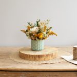 Las flores pueden sufrir modificaciones pero siempre se respetarán los tonos elegidos. Ten en cuenta que es difícil hacer un centro igual a otro y que además somos un taller creativo, no nos gusta hacer siempre el mismo centro.
