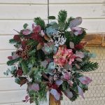 - Tonos de las flores: Verdes. Esta corona es enteramente natural, por lo que con el paso de los días la corona se irá secando poco a poco pero te durará todas las fiestas.