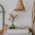 Flores preservadas en un recipiente de cristal estriado.
