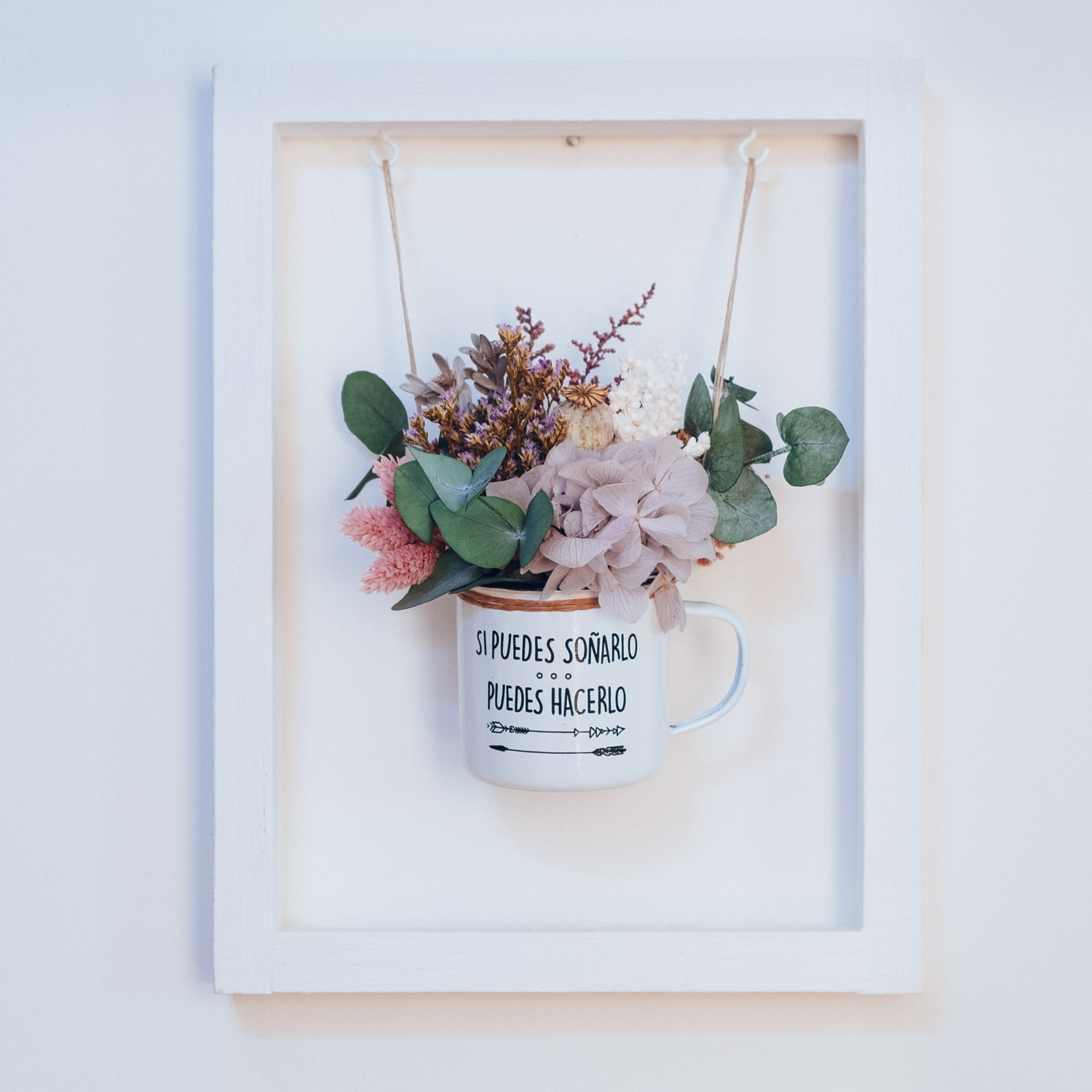 El marco está incluido en el centro (medidas: 24×36) y queda ideal en la pared a modo de cuadro (se cuelga con un simple clavo porque no pesa nada) aunque también se puede poner sobre una superficie.