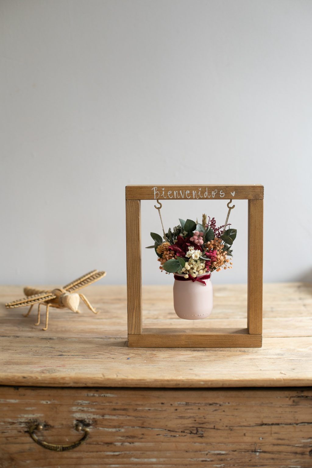 El marco de madera pintado a mano está hecho en nuestro taller con madera reciclada. Es normal que tenga alguna imperfección propia de la madera.