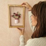 Este columpio está compuesto por un tarrito de cristal pintado a mano con flores naturales preservadas que cuelga de una cuerda.