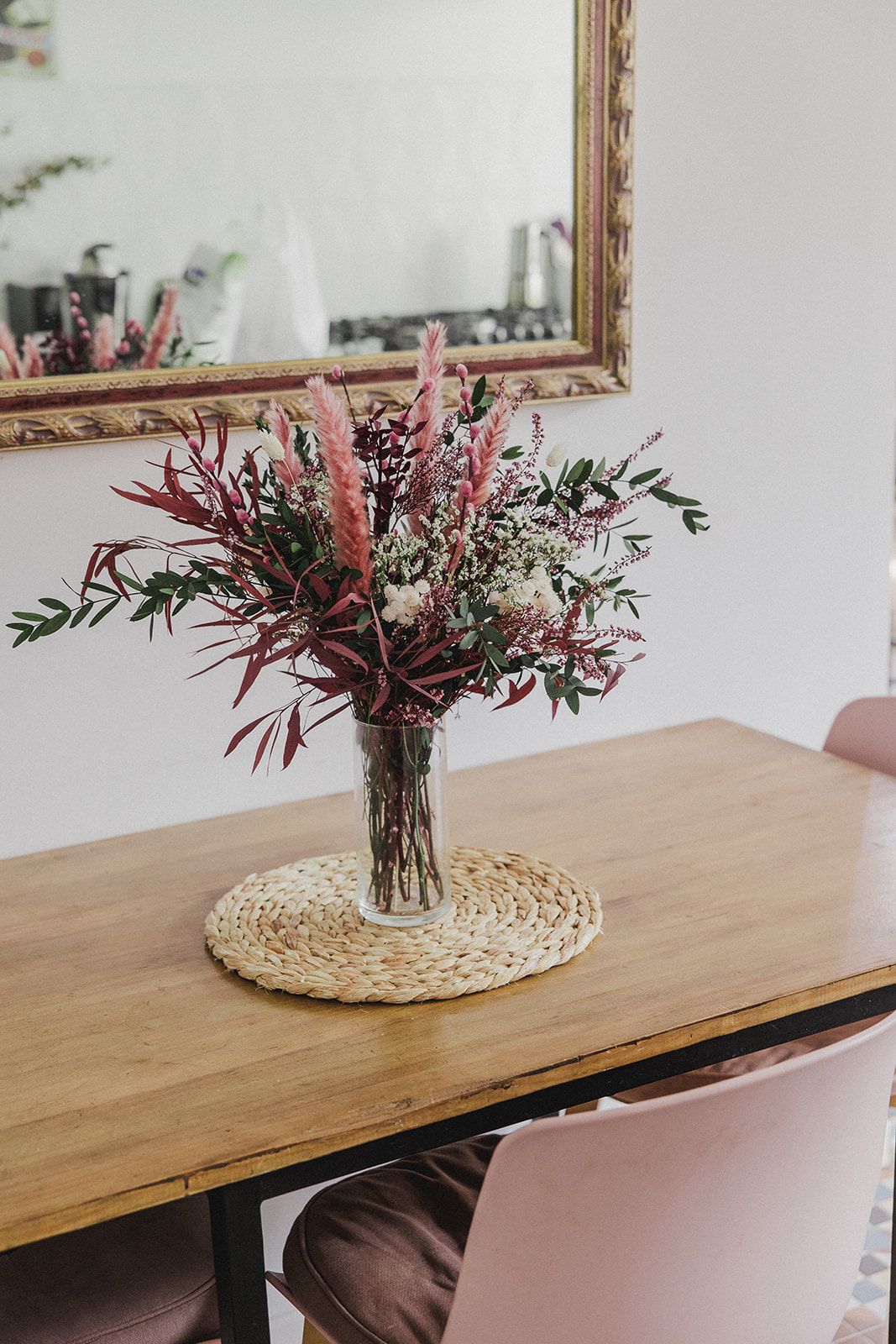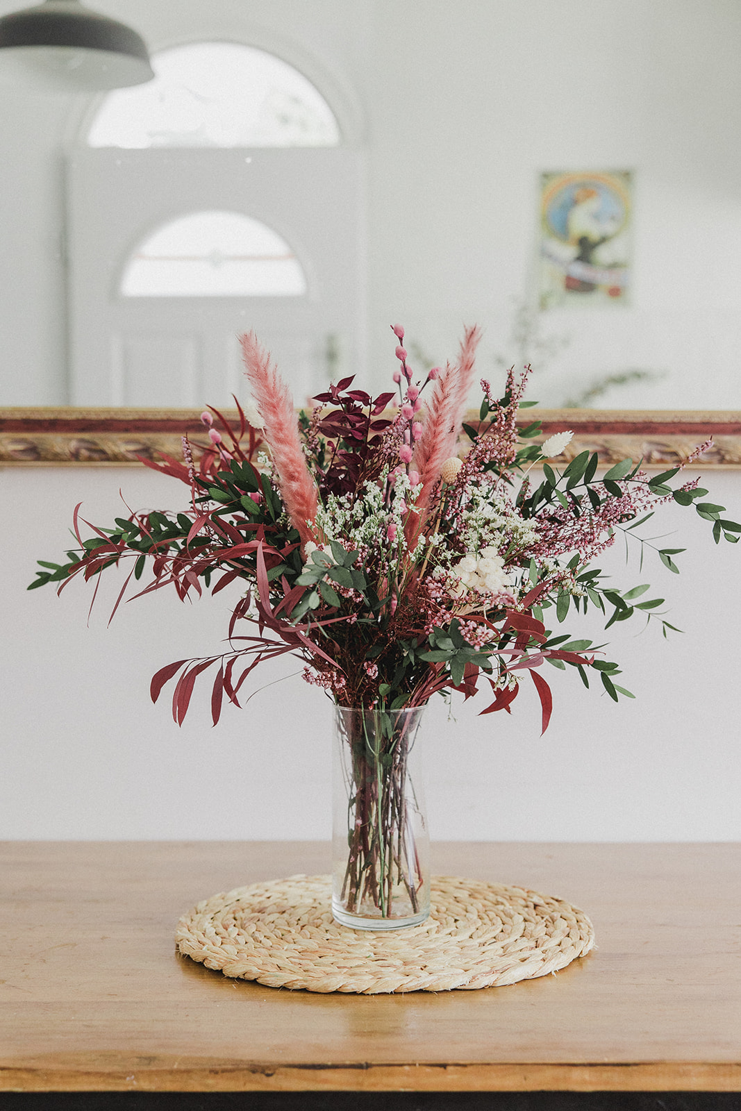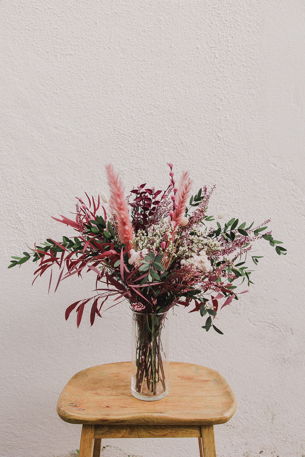 Importante: las flores son preservadas y secas, no se pueden mojar porque se estropearían con el agua. Es importante también que no les de la luz del sol de forma directa porque están teñidas. Las flores duran años, no se caen, pero con el tiempo irán perdiendo el color.