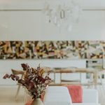 Recipiente de cerámica incluido en el centro, junto con las flores preservadas.
