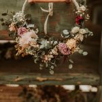 Este aro de flores es como el hoop bouquet de novia pero más pequeñito y con la finalidad de llevar enganchados en un lacito de terciopelo las alianzas. Es de un tamaño pequeño porque están pensados para las niñas de arras. En la línea de nuestros bastidores de la tienda on line es una creación con composición de flores que si quieres puede ir a juego con tu ramo de novia.