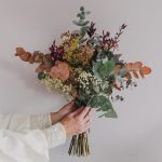 Las flores que lo componen son una base de eucalipto, una hortensia y variedad de flores silvestres.